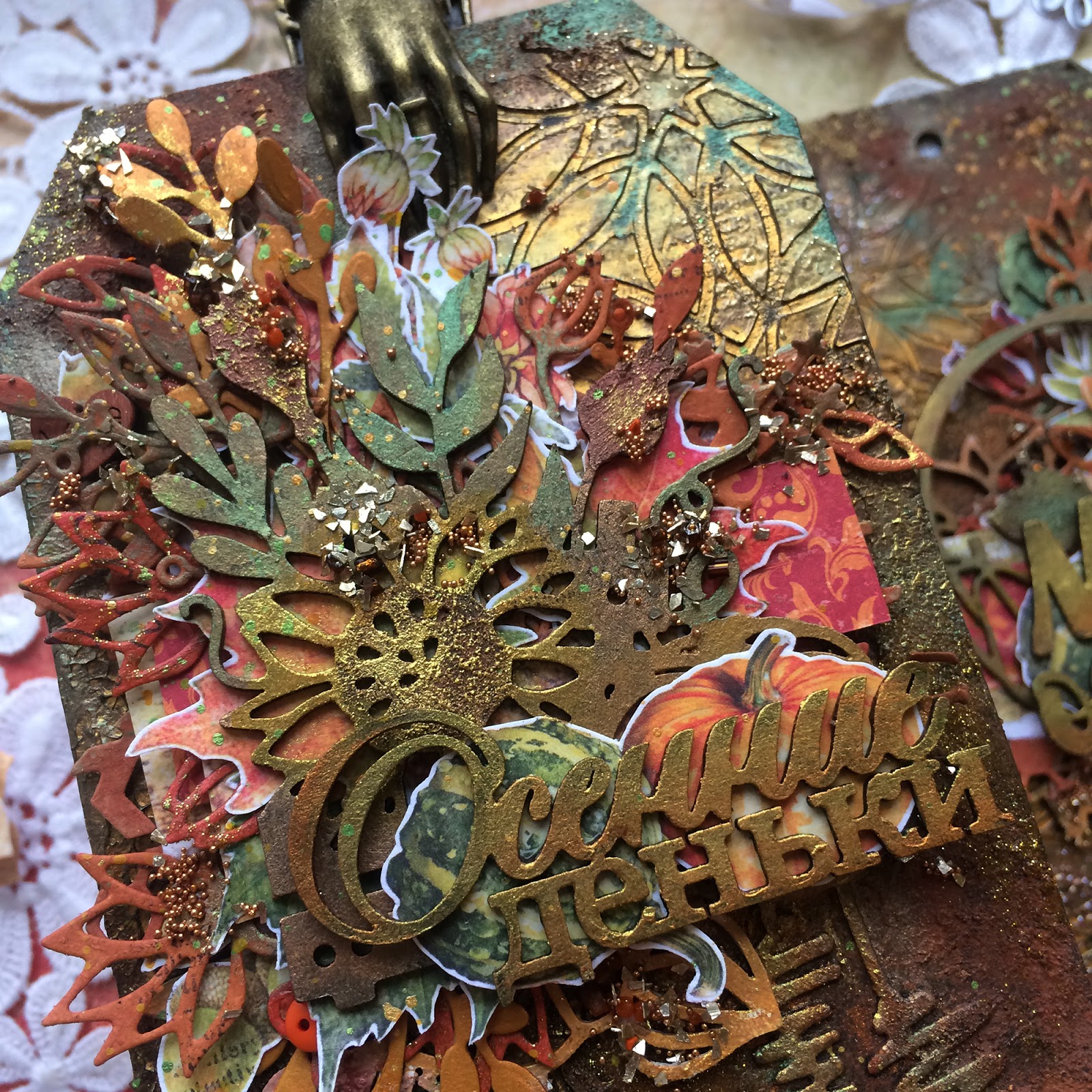 Осенняя тема все еще не отпускает меня, поэтому буквально на одном дыхании я сделала такую парочку осенних тегов с использованием любимых ножей и чипборда от LadyBug.
